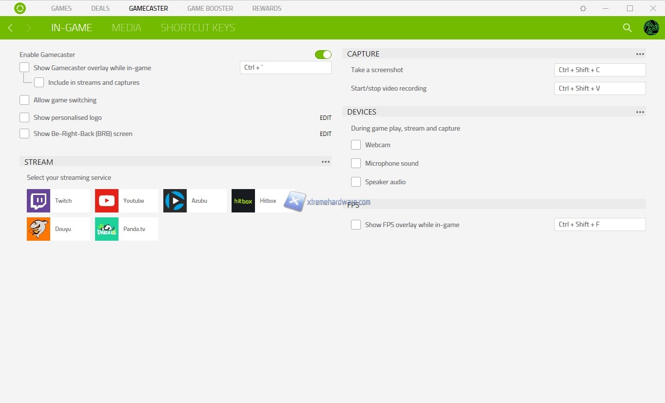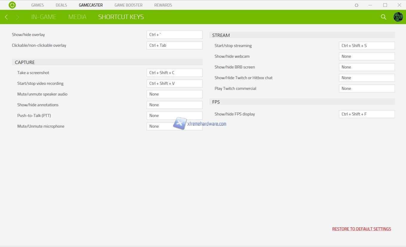 Si passa in ‘’GameCaster’’ dove passeremo alla parte ‘’Social’’ e informativa del software Razer Cortex. Nella versione base del software potremo abilitare solo l’Overlay base in Game per visualizzare FPS o ulteriori informazioni mentre per registrare Video e avere un Overlay più completo tipo durante stream Twitch e simili dovrete acquistare una licenza e rendere la versione Pro. Immancabili gli Shortcut Keys che potremo personalizzare a nostro piacimento.