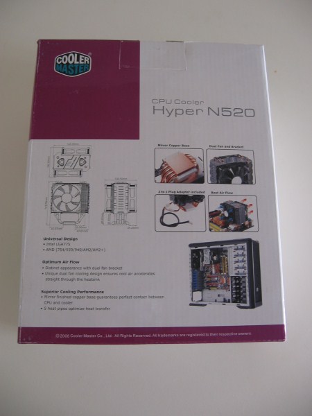 introCooler Master garantisce, come sempre, il massimo del raffreddamento al vostro processore e grazie a questo anche a tutti gli altri componenti all’interno del vostro case. Hyper N520 è il nuovo dissipatore di Cooler Master dal design universale, compatibile per Socket Intel (LGA 1366/LGA775) e AMD (AM2+/AM2/940/939/754) a doppia ventola e con uno spazio ottimale tra le alette, tale da garantire un flusso d'aria fresca attraverso il dissipatore.