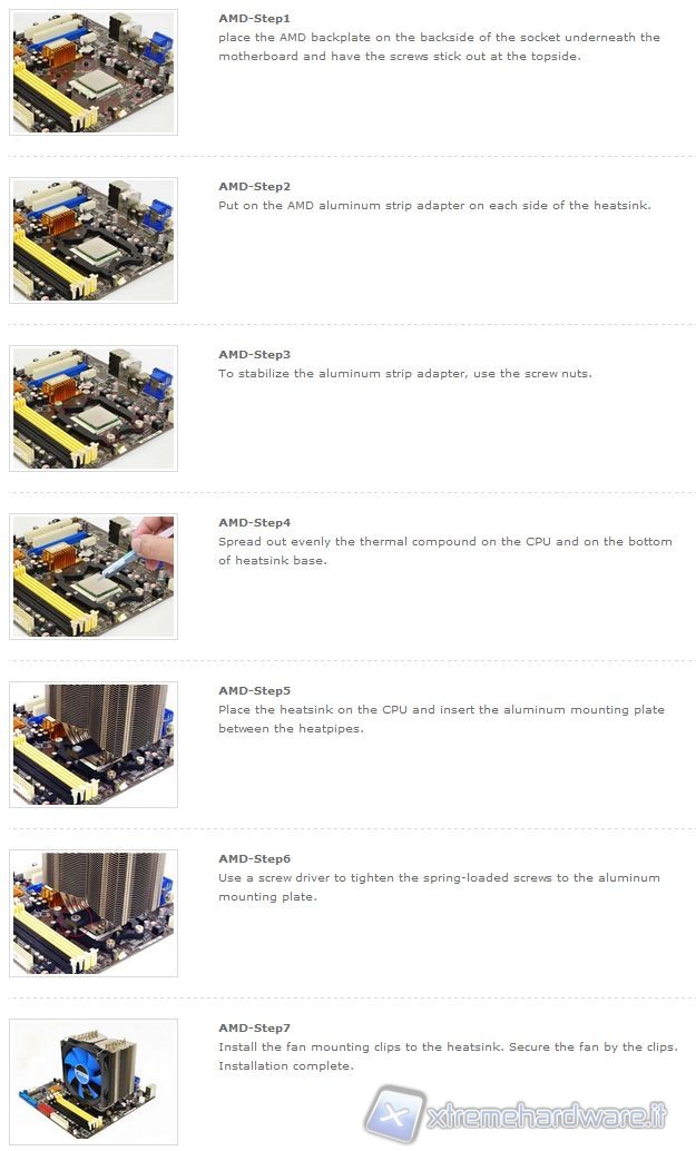 Inoltre riportiamo la procedura di installazione direttamente dal sito Prolimatech, per i sistemi AMD ed INTEL :