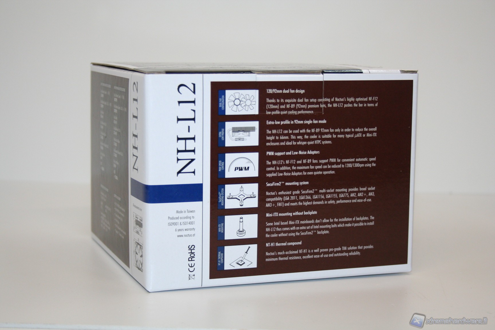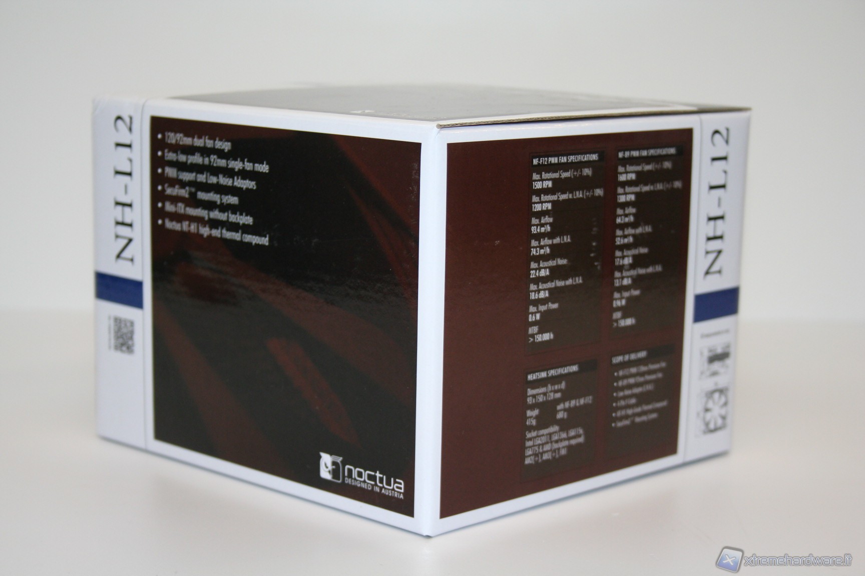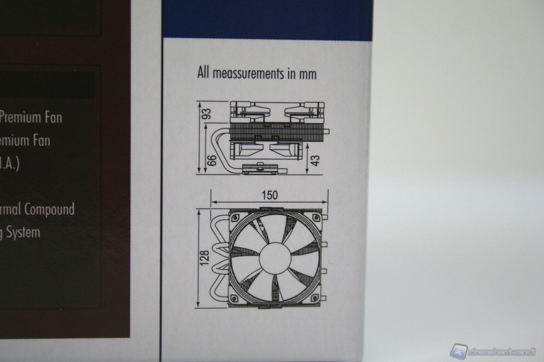 La confezione si presenta come un’ottima scatola di cartone con una finitura lucida su sfondo bianco, con moltissime informazioni dettagliate e un design particolarmente curato. Una volta aperta, possiamo notare il posizionamento nella parte superiore di una grande scatola bianca contenente il corposissimo bundle, sotto la quale è presente il dissipatore con le due ventole già pre-assemblate.