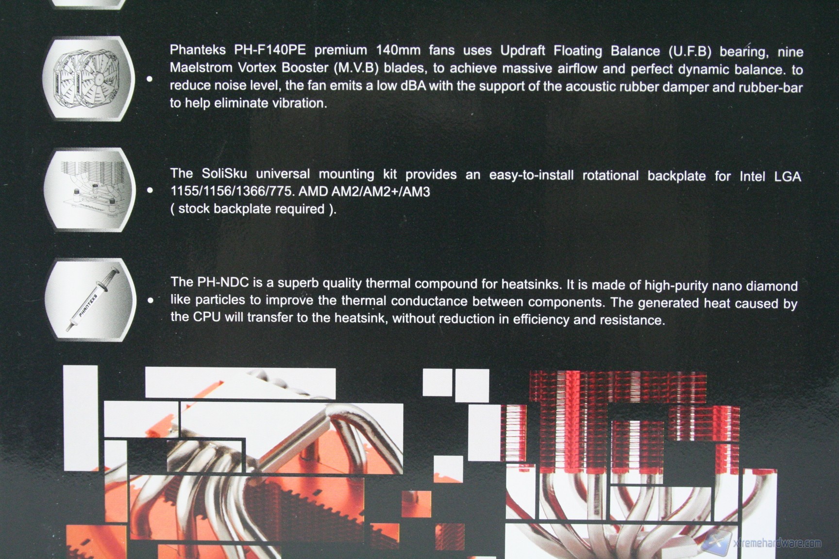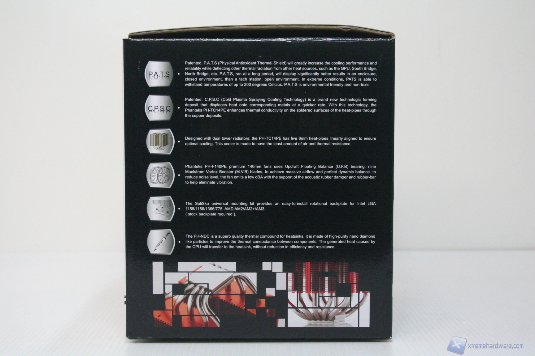 Il dissipatore è inserito in un ottimo confezionamento con sfondo bianco/nero e finitura lucida ed è veramente notevole il numero di informazioni riportate sulla confezione esterna. E’ apprezzabile nella parte posteriore la presenza di una descrizione in nove lingue, tra cui l’italiano. Nella parte sinistra, invece, sono presenti le features caratteristiche del modello, corredate da ottime immagini illustrative. Una volta aperta la scatola, il dissipatore è correttamente imballato e non ci saranno problemi all’atto del trasporto, complice l’eccellente imballaggio in fustellati di polietilene.