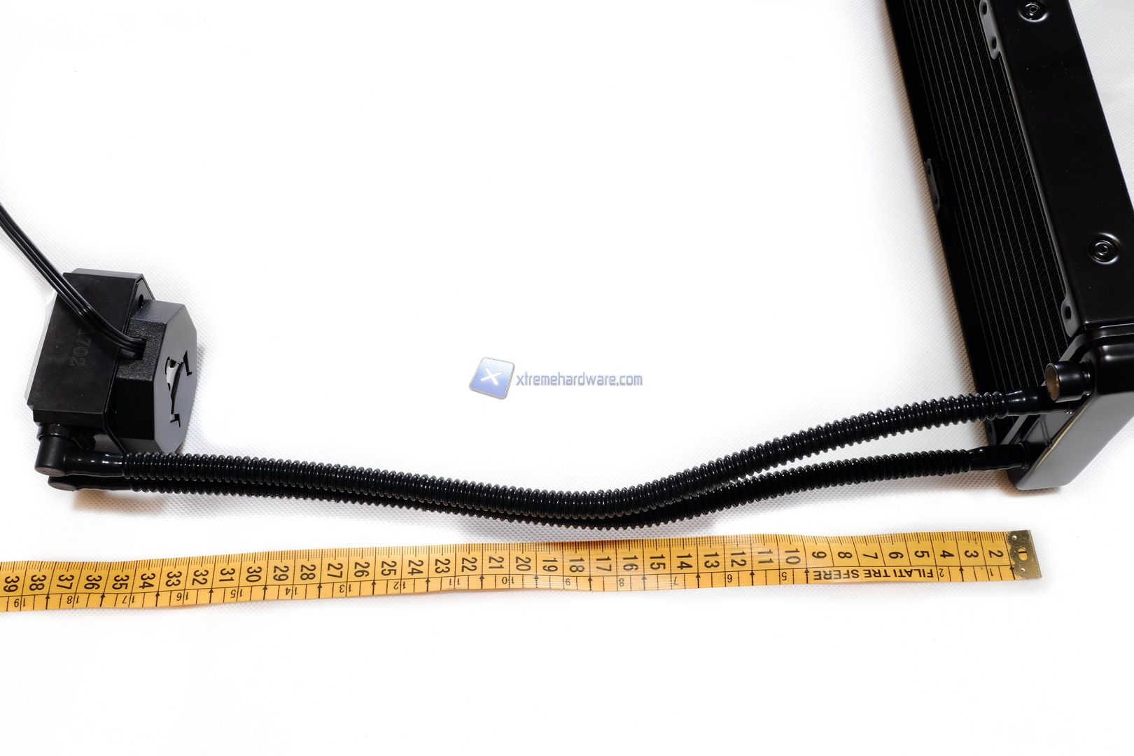 Il waterblock non presenta connettori particolari, come ad esempio porte USB per eventuali software di gestione, infatti l’unico cavo presente è quello di alimentazione, composto da un connettore sata per il power ed un 3-pin per leggere la velocità di rotazione della pompa, che si assesta sui 3000 RPM grazie all’uso di cuscinetti in ceramica. I tubi non trovano una collocazione superiore, bensì laterale quindi dovremmo far attenzione se vogliamo installare tale dissipatore con un particolare orientamento in quanto potremmo riscontrare incompatibilità con Ram.