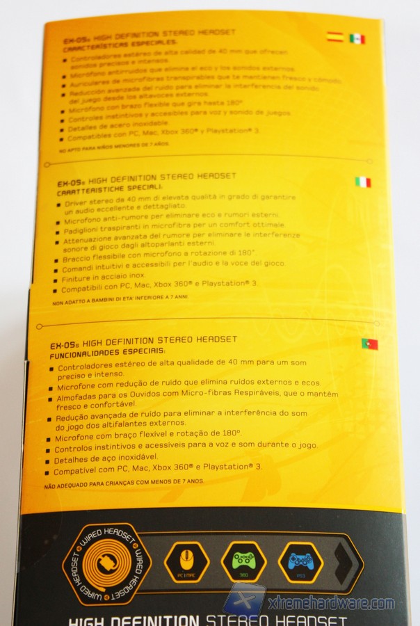 I lati ci riportano invece le caratteristiche principali delle cuffie in varie lingue tra cui anche l’italiano.
