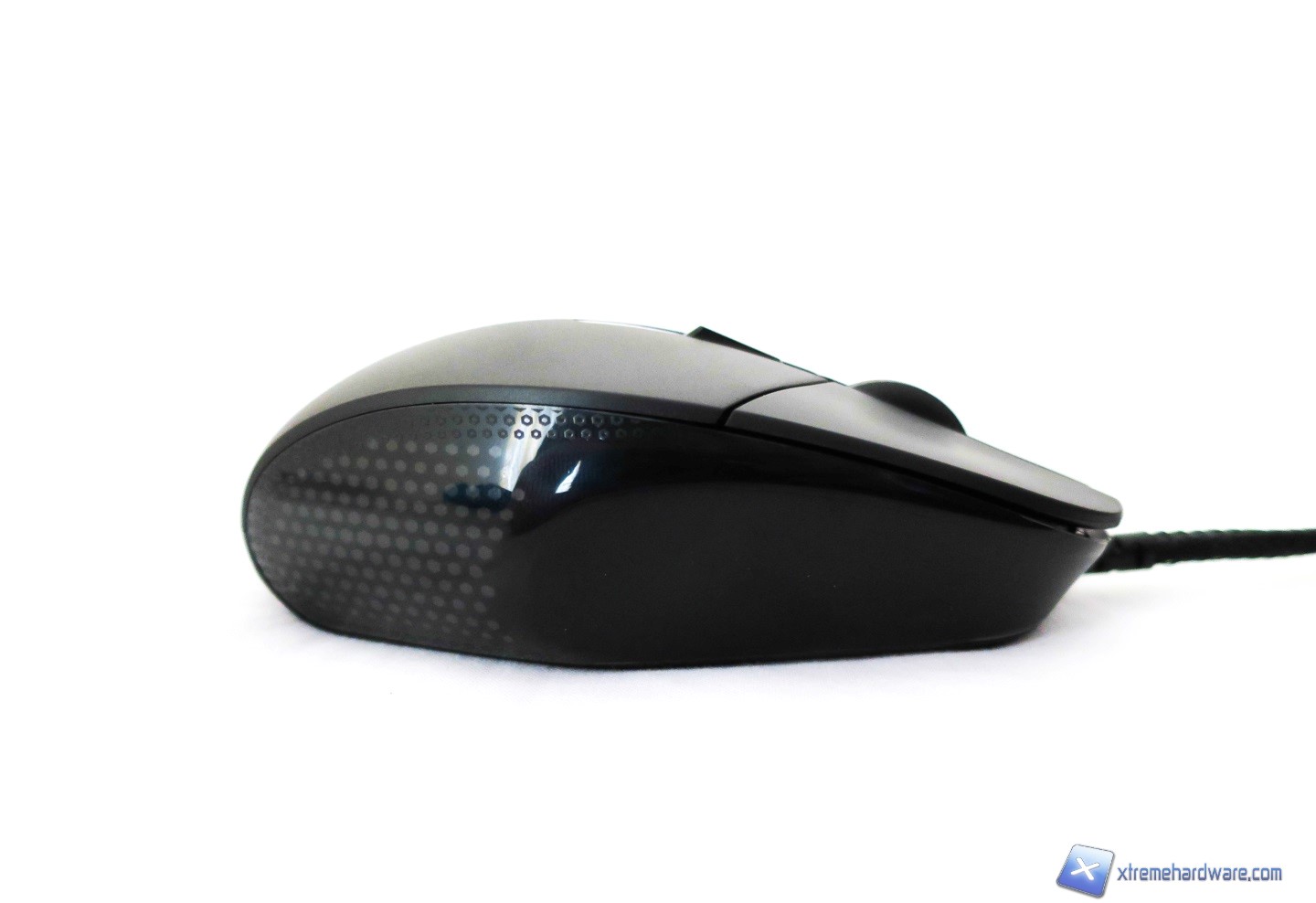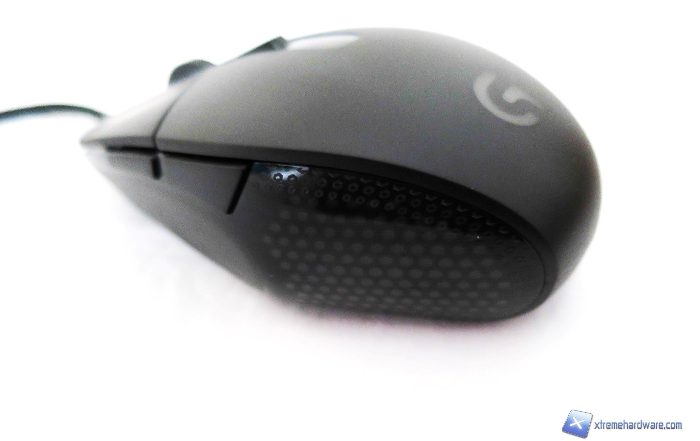 Spostiamoci verso i lati ed iniziamo con quello di sinistra. Qui possiamo scorgere meglio come Logitech al solito ha fatto un ottimo lavoro di qualità costruttiva e di design. Ambo i lati del mouse sono infatti dotati di una duplice superficie. Nella zona posteriore laterale troviamo una superficie liscia in plastica trasparente che “contiene” al suo interno una texture a nido d’ape dalla quale verrà proiettato il fascio di luce generato dal LED posto all’interno della scocca, creando un effetto di luce molto particolare. Nella zona anteriore laterale invece troviamo la superficie opaca dove, data la forma del mouse, potremo poggiare il pollice in attesa eventualmente di premere i due classici tasti posti al centro di queste due superficie/zone. I due tasti laterali questa volta non hanno una dimensione generosa come in altri mouse della serie Gaming di Logitech. Troviamo infatti due tasti ricavati dalla scocca e che hanno forme diverse mantenendo però una dimensione minima. Vedremo nel capitolo delle prove ed impressioni se tale scelta è stata funzionale o meno.