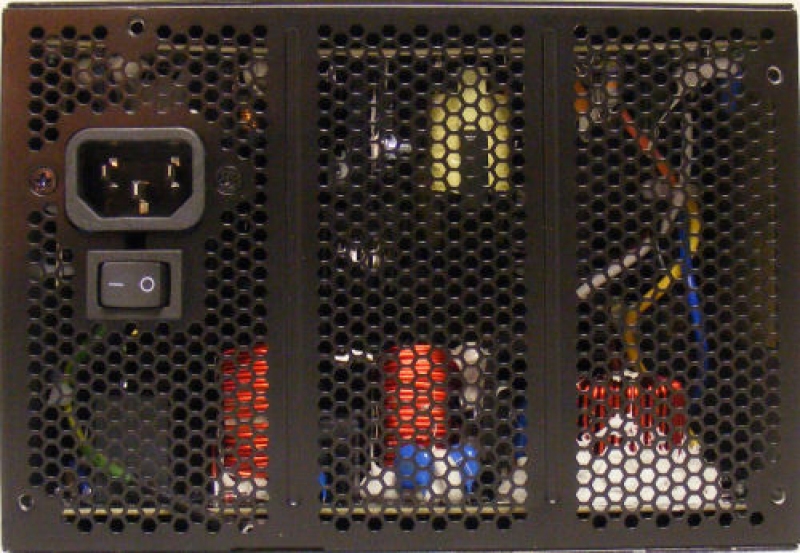 Sul retro del PSU accanto alla ventola da 120mm che serve per il raffreddamento interno ed al contempo stesso allo smaltimento del calore all'interno del cabinet, senza disturbare i flussi interni d'aria generati dalle altre ventole, notiamo i connettori per i cavi modulari, in particolare ci sono 3 connettori identificati con +12v1/HDD a cui vanno collegati i cavi modulari molex e/o Sata e due connettori identificati +12v3 e +12v4 a cui vanno connessi i cavi per alimentare le schede grafiche, oltre agli altri presenti sul corpo PSU.