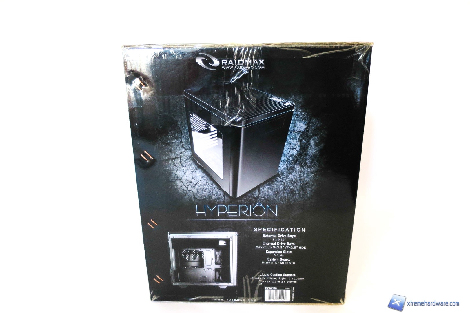 Il Raidmax Hyperion è ospitato in una classica confezione di cartone rigido con una superfice lucida che risalta le immagini e le informazioni su di essa presenti. Nella parte frontale troviamo in bella vista un’immagine illustrativa del case con un disegno “meccanico” che la contorna. Poco più sotto il nome del prodotto.