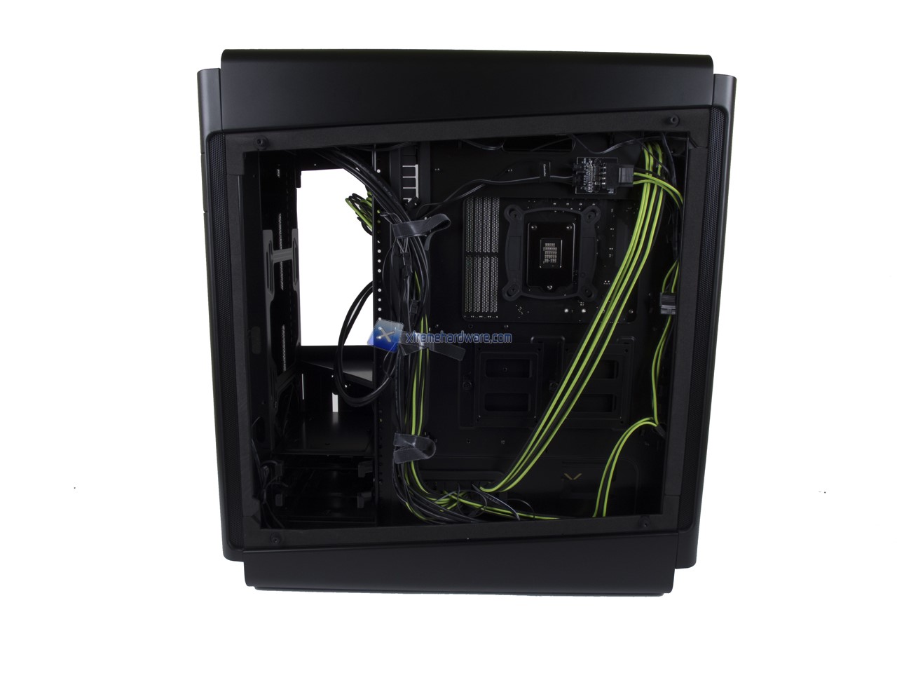 Lo spazio posteriore tra il Tray della Mainboard e la paratia sarà di circa 2,5 cm. Non abbiamo avuto alcun problema di gestione dei cavi anche grazie alle fettucce in velcro. Inoltre la paratia di destra come per il BitFenix Auora sarà dotata di un film scuro che oscurerà i cavi posteriori.