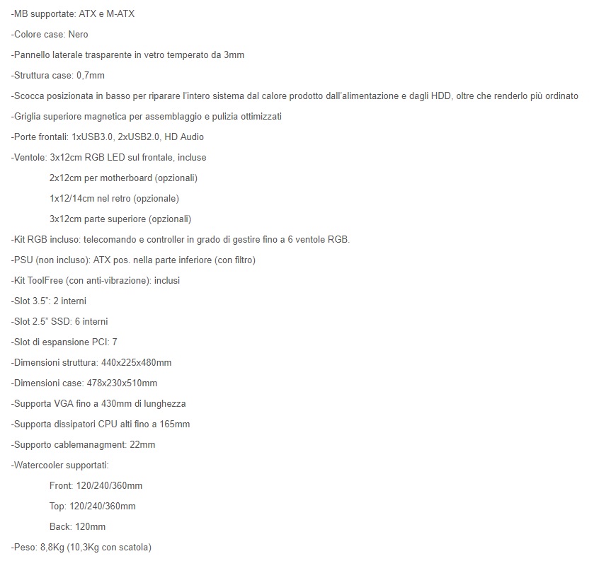 Queste sono le specifiche tecniche del case, riprese direttamente dalla sito ufficiale iTek.
