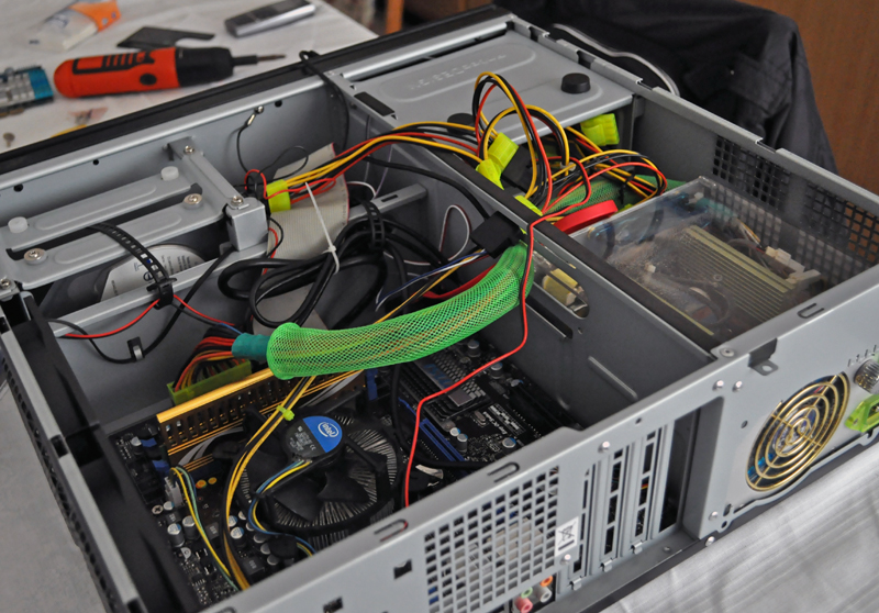 Ecco qui il case come si presenta dopo aver montato 2GB di Apacher DDR3 2000Mhz CL9, un Core i5 750 @ 2.66Ghz su una MSI H55M-E33. Come lettore dvd abbiamo usato un Samsung Sata e come HDD un Maxtor da 80GB. Non ci resta che andare a montare la scheda video. Per il montaggio degli HD basta rimuovere la staffa, togliendo le viti, inserire l’HD, serrare con ulteriori viti ed infine rimontiare la staffa. Per montare il lettore bisogna invece rimuovere la gabbia a sgancio rapido e inserire il drive nell’apposito vano, infine rimettiamo la gabbia per unità da 5.25’’ nel suo alloggio.