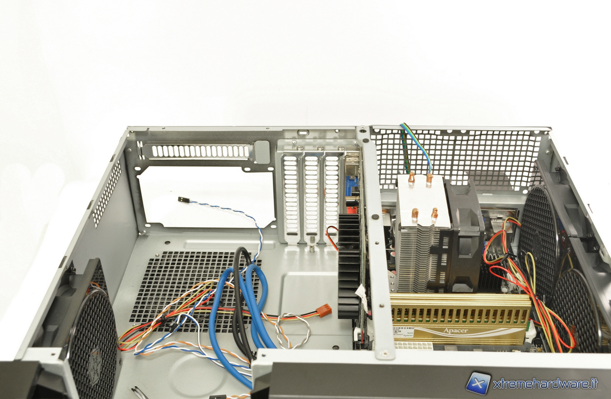 Vi lasciamo, infine, con queste tre foto del case con il nostro hardware montato. Il sistema è composto da: scheda madre ECS H67G2-I, processore Intel Sandy Bridge 2600k, memorie RAM Apacer Giant II e scheda video Nvidia 8500GT.
