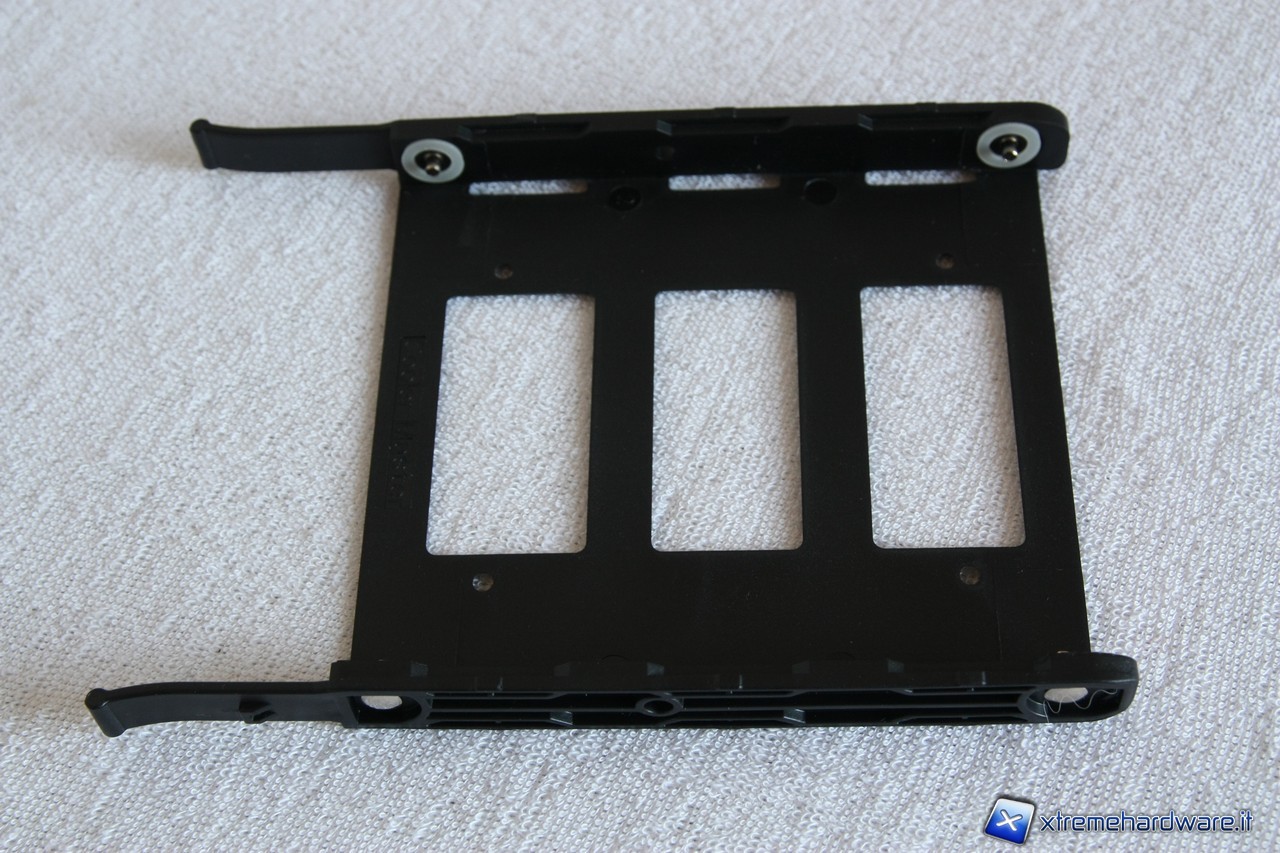Il montaggio degli hard disk avverrà mediante l'utilizzo dei bracket too-less in plastica, corredati internamente da guarnizioni in plastica antivibrazioni. Sarà possibile installare anche drive da 2.5".
