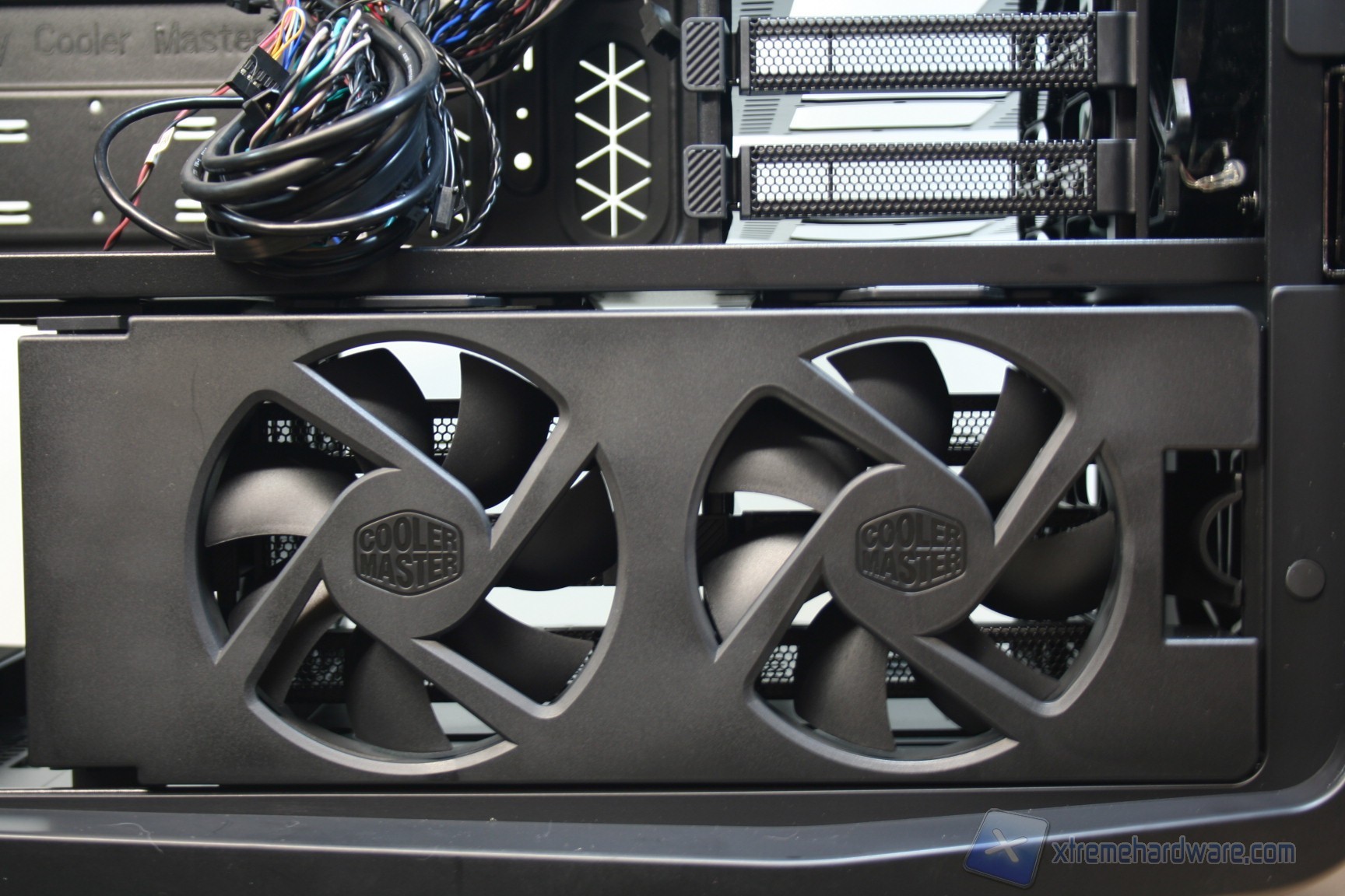 Nella parte inferiore invece sono stati installati due cage, removibili grazie a semplici viti di ancoraggio, che permettono l’installazione di altri 6 hard disk e che ne permettono la ventilazione grazie a due ventole da 120mm preinstallate, le quali vengono connesse direttamente al sistema di regolazione nel pannello superiore. Questo sistema permette la regolazione della ventilazione interna, e conseguentemente sia della rumorosità che delle temperature. Ovviamente questo supporto per le ventole può essere aperto grazie ad una levetta, tramite un movimento orizzontale di 90 gradi in senso orario, ma può anche essere rimosso qualora fosse inutile, o qualora dovesse servire uno spazio maggiore.