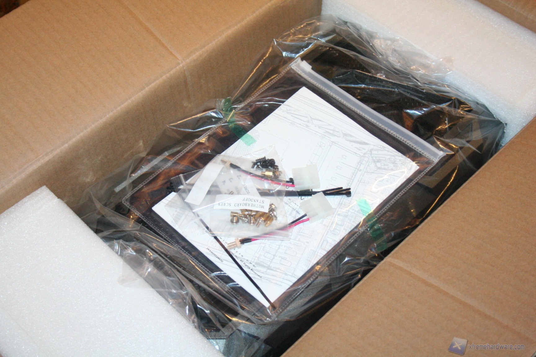 un sacchetto di plastica contenente le viti per i lettori, le ventole e l’alimentatore