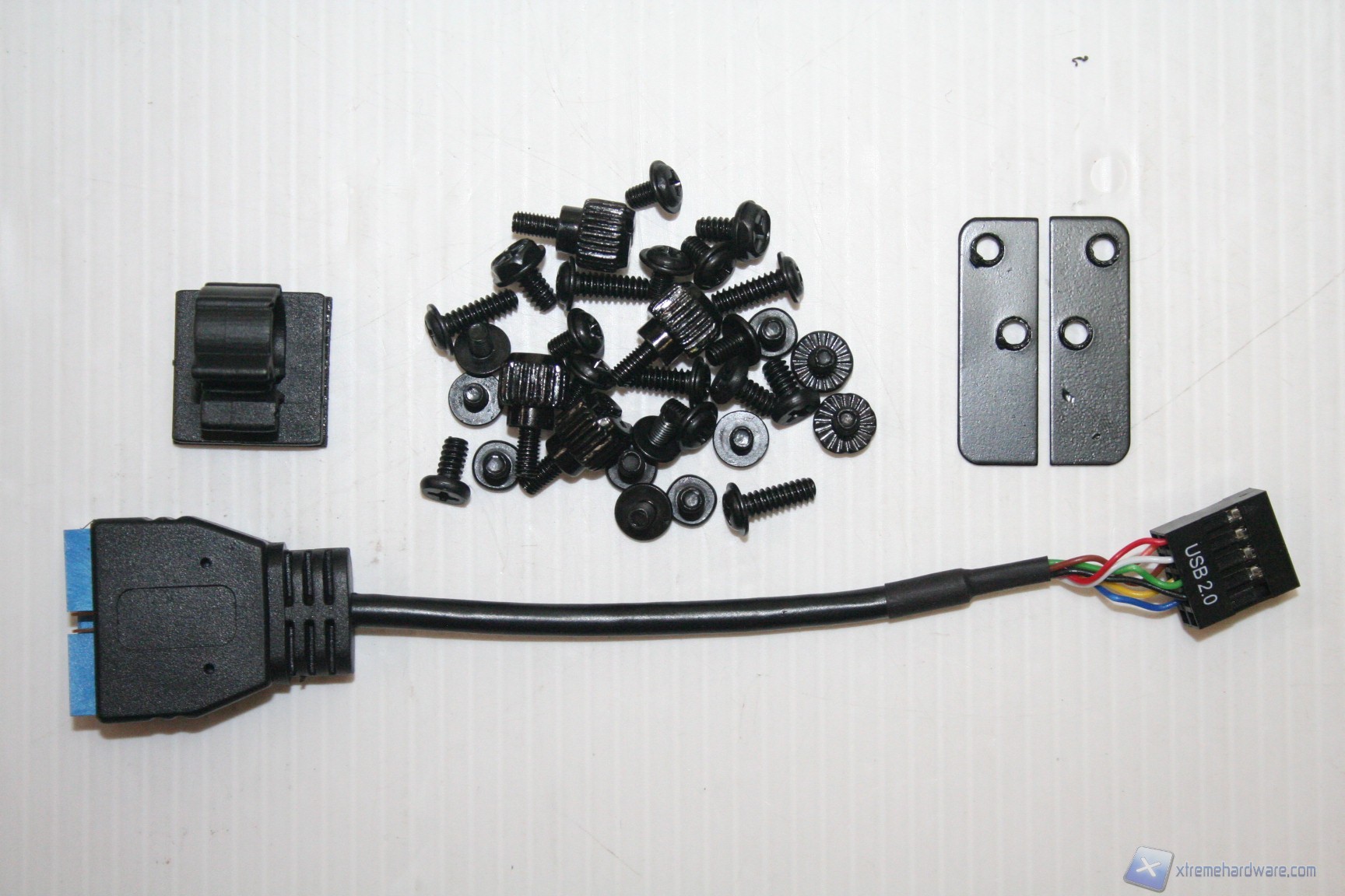 Il bundle in dotazione è discreto per un cabinet di questa fascia. Abbiamo gradito la presenza dell’adattatore USB 3.0 interno. Oltre a questo sono presenti due ventole da 120mm, di discreta qualità.