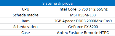 I test sono stati effettuati con sistema a default, con cpu a 2.66Ghz e con sistema in Overclock con cpu a 3.80Ghz. La VGA è rimasta sempre alle frequenze di casa.