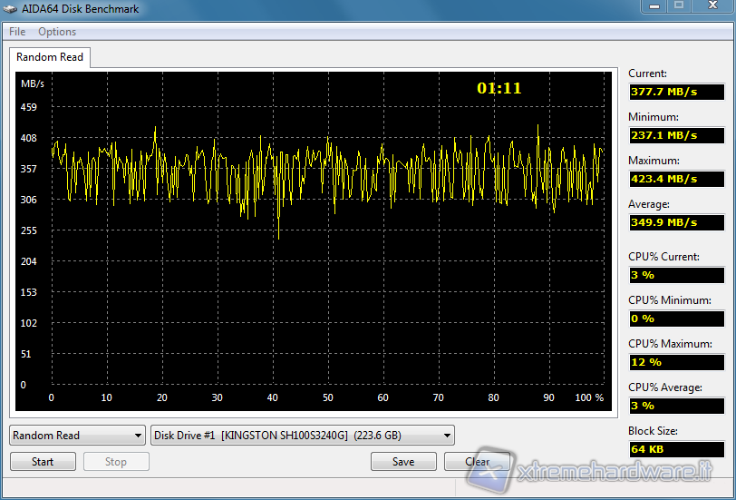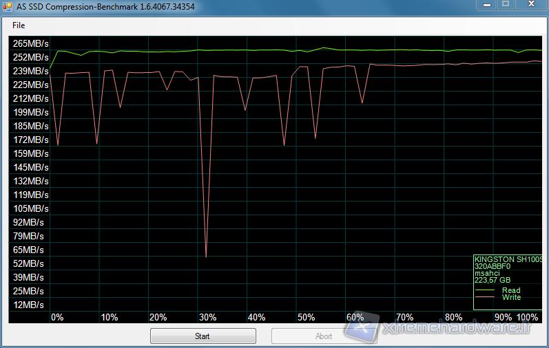 In tale test le prestazioni riscontrate non sono state molto elevate, soprattutto per quanto riguarda la lettura casuale, i 349,9 MB/s di media infatti sporcano un pochino le prestazioni rilevate in scrittura che risultano essere buone: