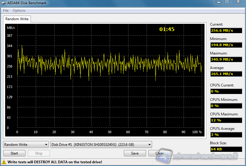 Tutti i test sono stati effettuati utilizzando il drive completamente vuoto, senza partizioni e inoltre sono stati eseguiti in ordine casuale più volte in modo da avere un risultato medio molto preciso.